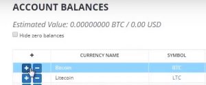 Once that has been done go to your ‘Wallets’ and press the ‘plus’ button on the Crypto Currency you want to deposit, this is probably going to be Bitcoin or Ethereum if you are new.